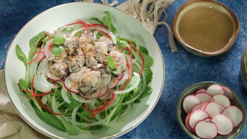 Còn món khai vị gì lý tưởng hơn với món gỏi hàu sữa, đặc biệt là thịt hàu vừa béo vừa ngon, kết hợp với các nguyên liệu khác tạo nên một món gỏi cực hấp dẫn.