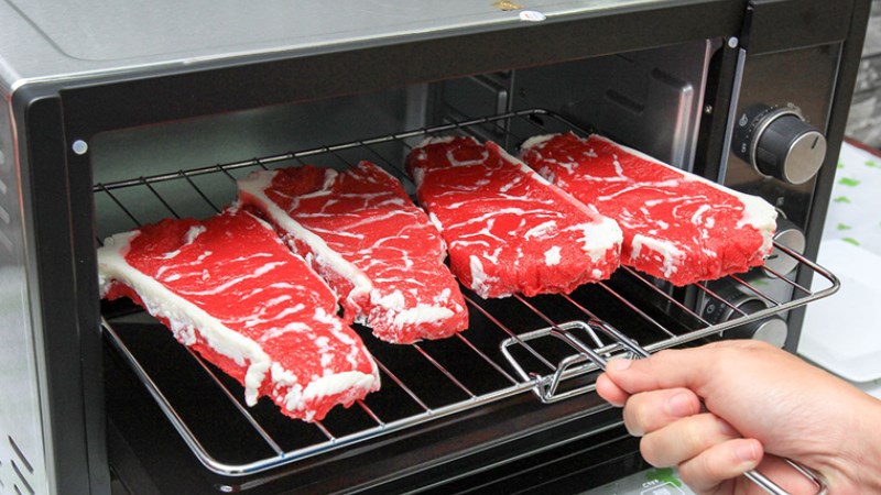Khi rã đông bằng lò nướng, bạn lưu ý không để nhiệt độ lò quá cao tránh thịt bên trong còn bị đông nhưng bên ngoài đã bị chín tái.