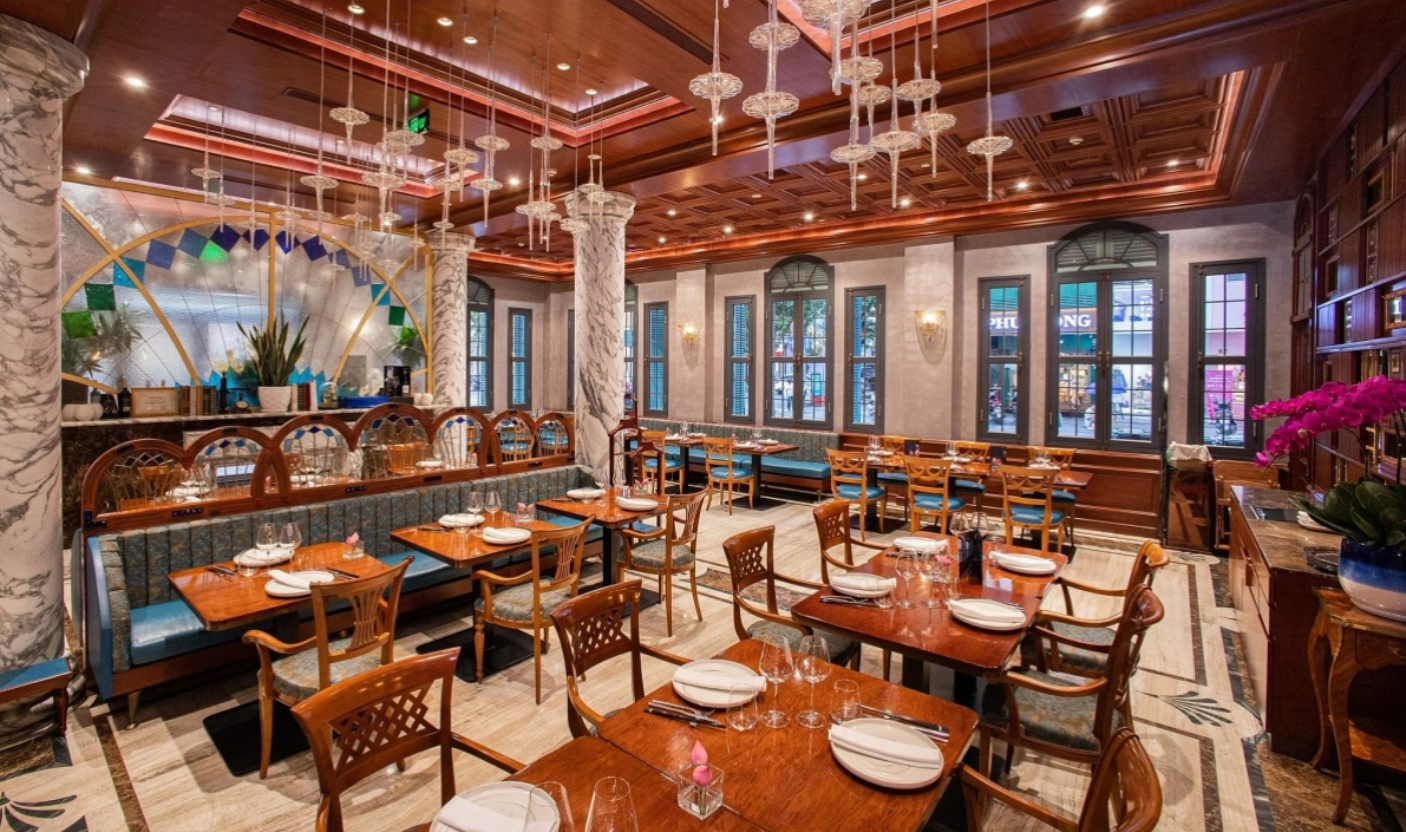 Nằm tại tầng 66 của tòa nhà Landmark 81, nhà hàng Oriental Pearl là lựa chọn phù hợp cho những gia đình muốn thưởng thức bữa tối ngắm toàn cảnh thành phố từ trên cao. Dịp lễ, nhà hàng phục vụ buffet hải sản cao cấp với thực đơn đa dạng từ tôm hùm, hàu, tôm sú đến các món thịt mang phong cách Á – Âu, đáp ứng khẩu vị khác biệt của gia đình đông người. Chi phí cho mỗi suất buffet khoảng 1,8 triệu đồng vào ngày thường và 2,2 triệu đồng vào dịp cuối tuần hoặc lễ. Ảnh: Oriental Pearl
