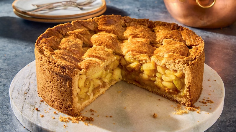 Bánh táo Appeltaart của Hà Lan khác biệt với các phiên bản khác ở lớp vỏ giòn và nhân táo ngọt ngào, được nướng cùng các loại gia vị. Ảnh: cloudinary