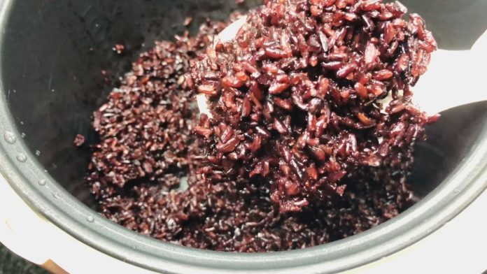 Cơm gạo lứt tím than sau khi ủ sẽ mềm dẻo, thơm lừng, hạt cơm tơi xốp, màu tím than đẹp mắt như xôi nếp than.