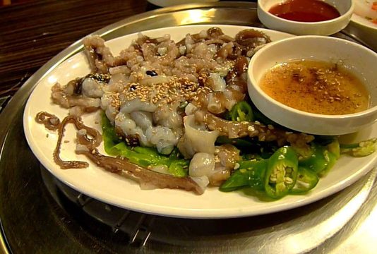 Rùng mình thưởng thức món bạch tuộc sống ngoe nguẩy trong miệng