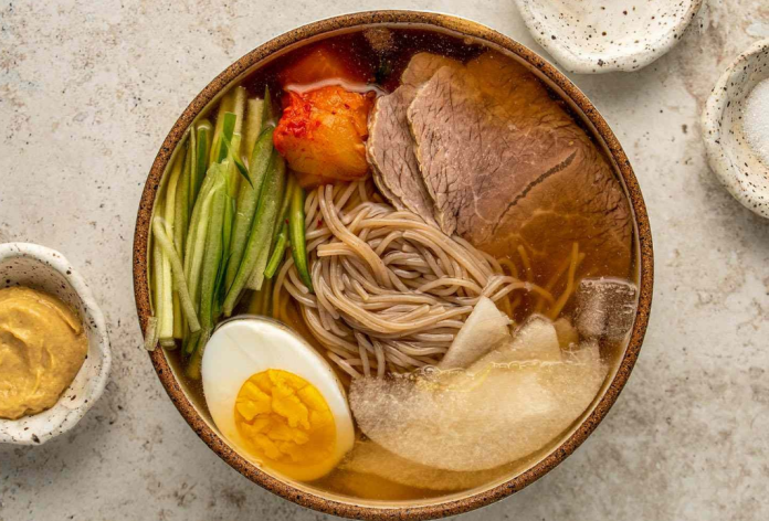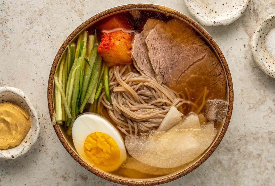 Naengmyeon nghĩa là mì lạnh, chủ yếu được làm từ bột kiều mạch và tinh bột. Món này có thể ăn với nước dùng lạnh như mul naengmyeon, hay trộn với nước xốt cay như bibim naengmyeon. Nhiều người Hàn Quốc thích dùng Naengmyeon làm món tráng miệng sau khi ăn thịt nướng.