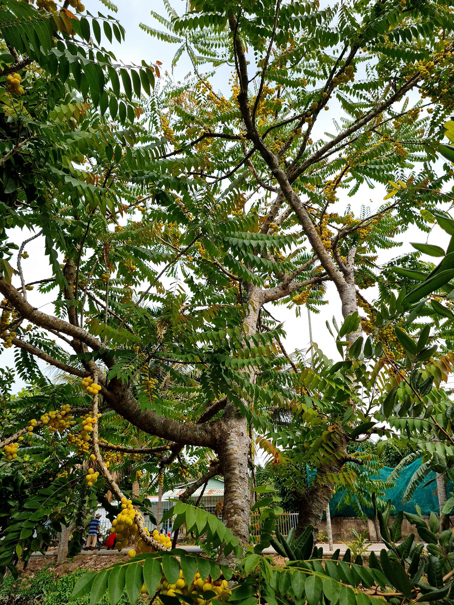 Cây có thể cao đến 10m, tán lá rộng và hoa màu hồng rất đẹp. Trái mọc thành từng chùm dày, 6 múi, vỏ từ màu xanh non đến ngả vàng nhạt, hình dáng khá giống quả bí rợ (bí đỏ) nhưng kích thước nhỏ hơn rất nhiều, cỡ bằng ngón tay cái người lớn.