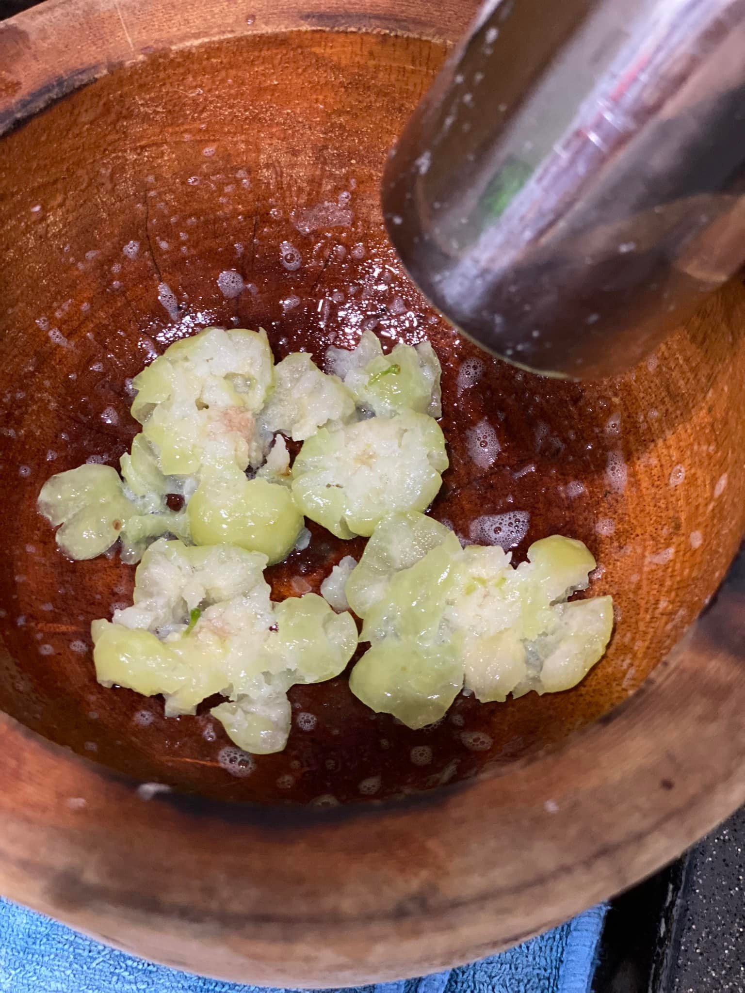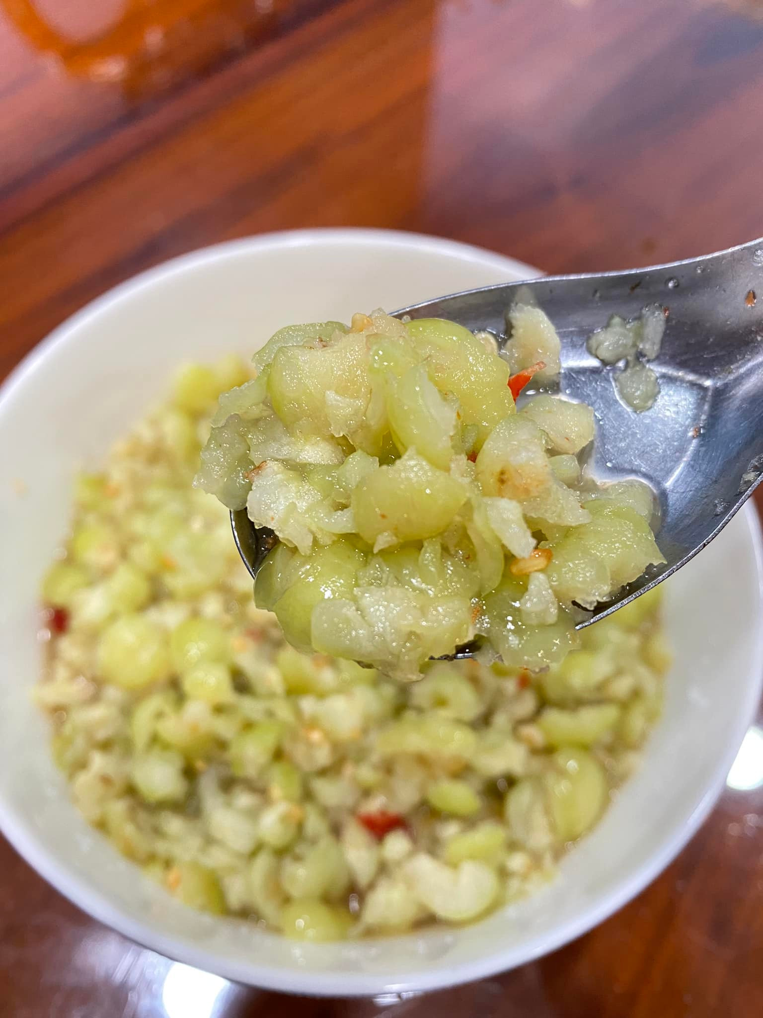 Quả chùm ruột có 2 loại, 1 loại vị chua và 1 loại vị ngọt. Với chùm ruột chua, bà con thường chấm với muối ớt hoặc đập dập, xóc cùng gia vị như trái cà na.