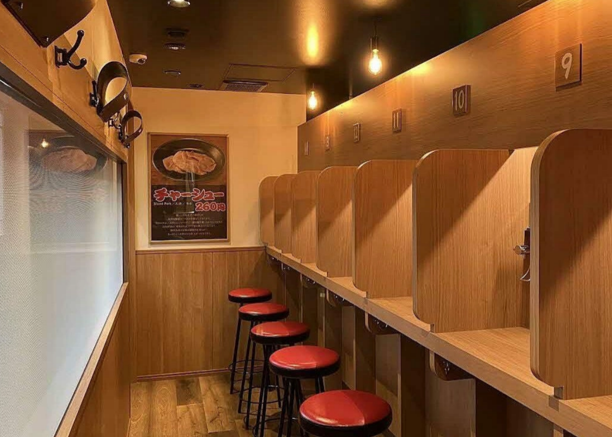 Các gian riêng lẻ được thiết kế để giảm thiểu sự phân tâm, giúp thực khách tập trung hoàn toàn vào món ăn. Đối diện với tường hoặc rèm, bạn thoát khỏi sự hối hả của nhà hàng, các thực khách khác, tạo ra một trải nghiệm ăn uống như thiền. Việc tập trung vào tô mì, ăn nhanh và không nói chuyện nhiều cũng thể hiện sự tôn trọng với công sức của đầu bếp và hương vị đặc trưng của món ramen.