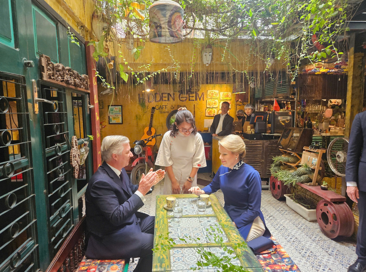 Vua Philippe và Hoàng hậu Mathilde đến quán Hidden Gem Coffee ở phố Hàng Tre vào khoảng 14h. Chủ quán Nguyễn Văn Thơ cho biết nhận thông tin đón tiếp Vua và Hoàng hậu Bỉ từ một tuần trước và trước giờ họ đến, lực lượng an ninh đã tới kiểm tra nhưng không lập rào chắn, quán vẫn đón khách. Nhà vua muốn buổi trải nghiệm chân thật và bình thường.